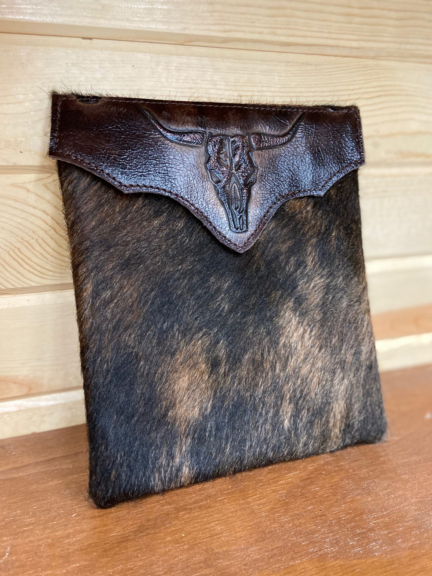 iPad Case – Creamy Charolais Hair-On, iPad Case – Dark Brown Bridle